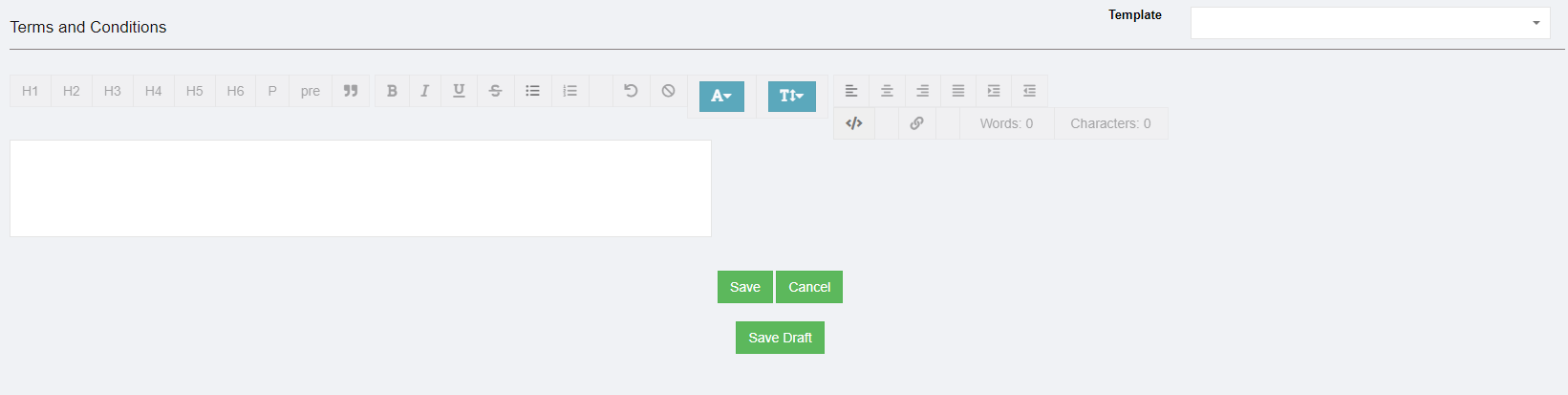 - In Terms and Condition section, user can enter details or select template from the template field.