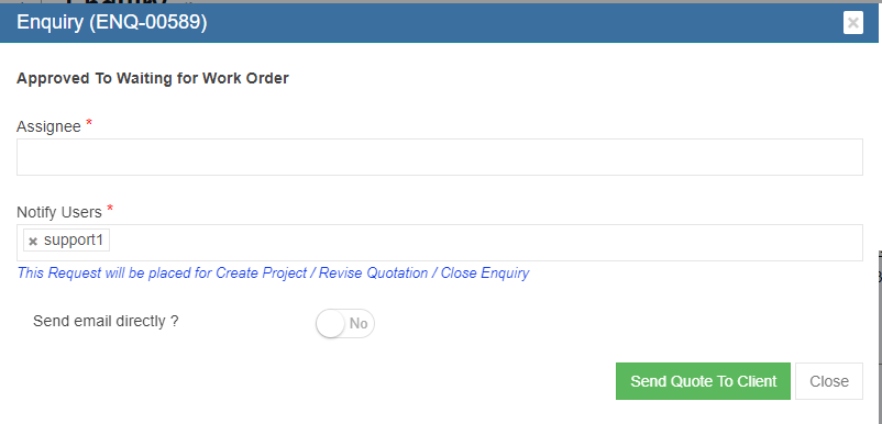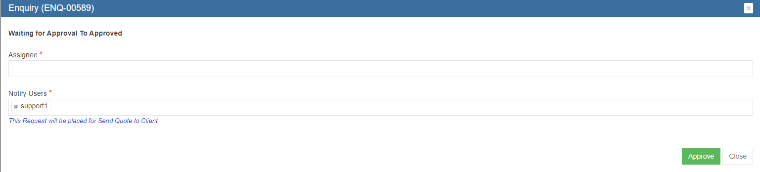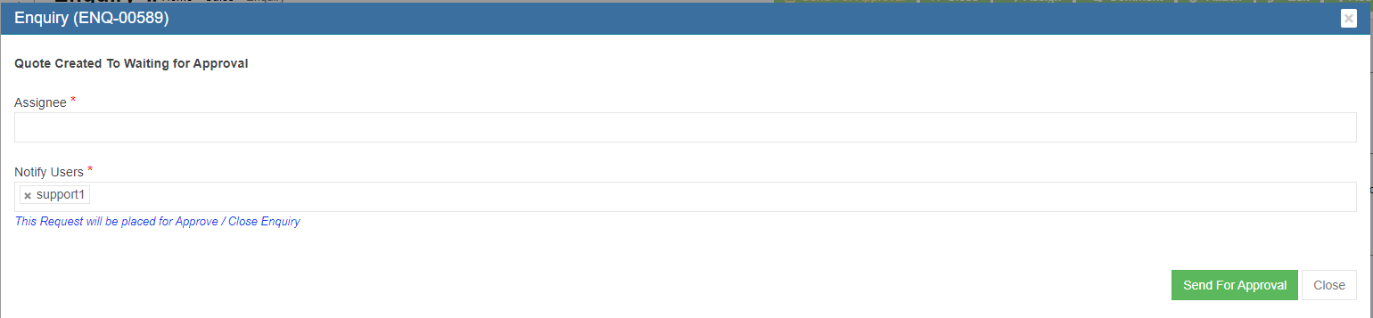 - Waiting for Approval-after quotation was sent for approval, the enquiry status will change to "Waiting for Approval"