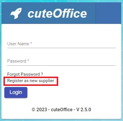 - In cuteOffice user login page of supplier portal, click "Register as new supplier",