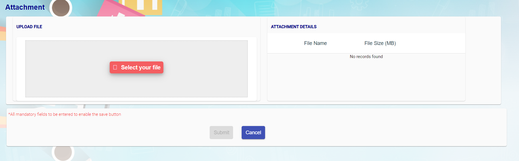 Based on the above selected key, system will show the list of item(s) of the quotation/PO approved record in the invoice details page where user can select which item to invoice. Supplier needs to enter the Invoice Date, Invoice Number and Remarks (optional) and it is compulsory to upload the invoice as attachment to this invoice details record.