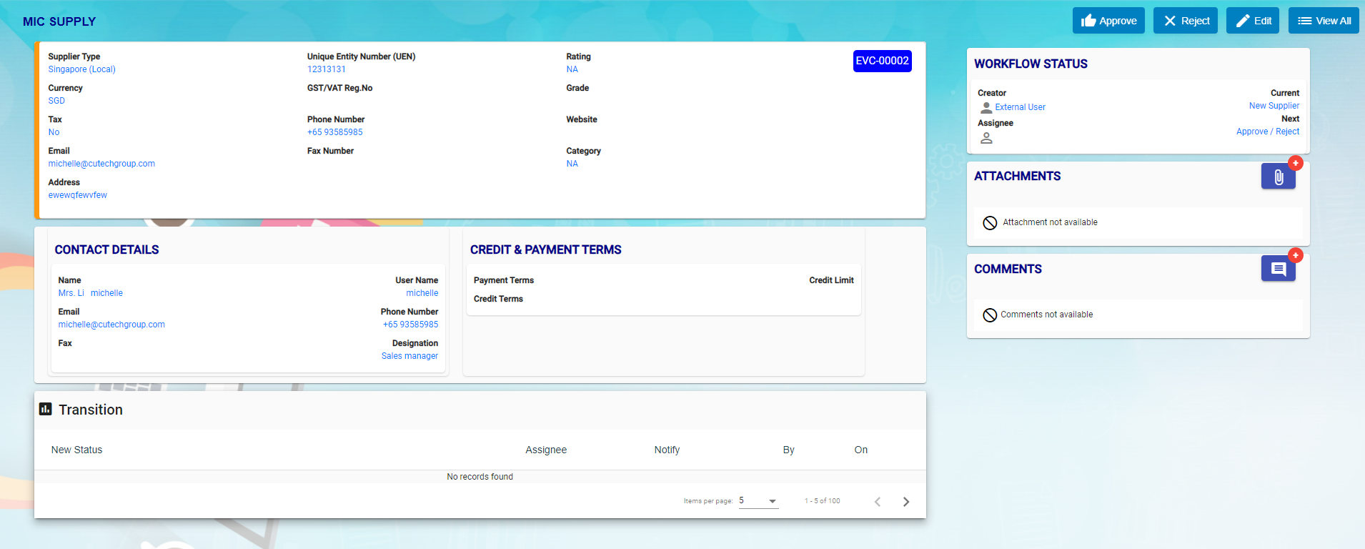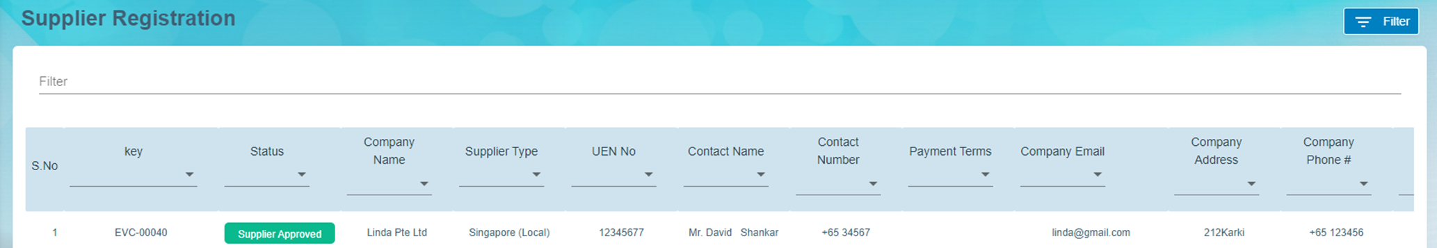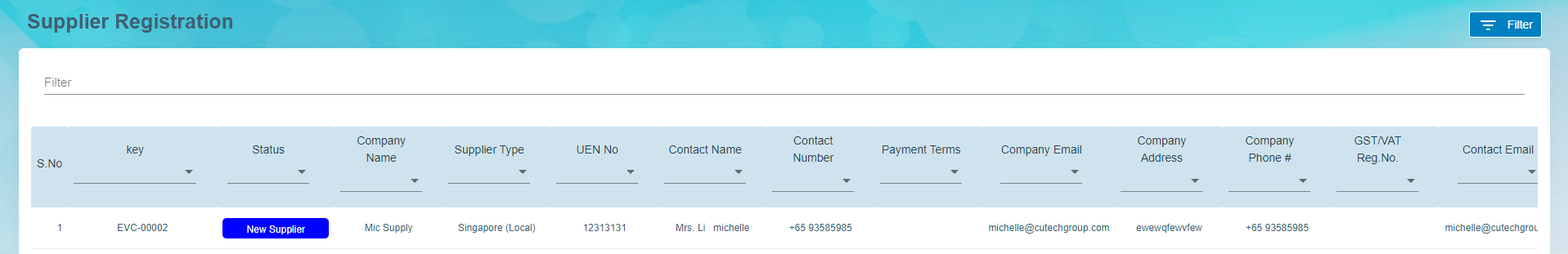 Once new suppliers registered in cuteOffice, client company need to approve the new supplier to allow suppliers appearing in procurement module.