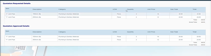 - Once suppliers confirmed the details entered are correct, click submit, the status of new quotation will be changed to Waiting for quotation approval.