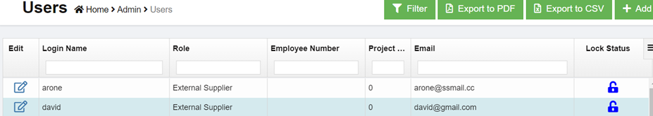 Note: External Supplier will be available in the user list. External supplier will login to the supplier portal.
