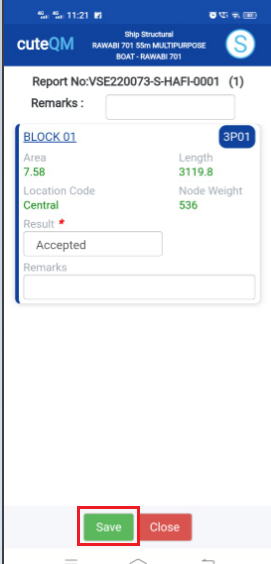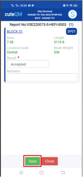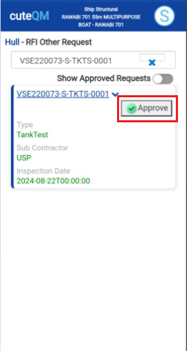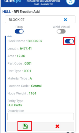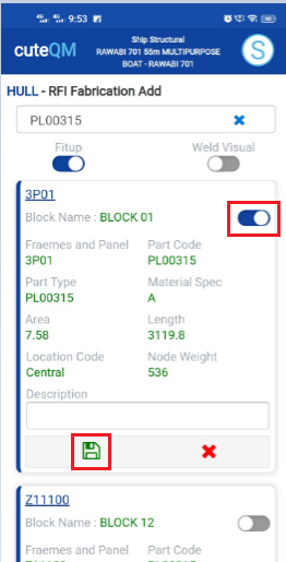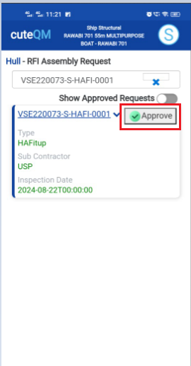 - Click Save button. RFI Fabrication inspection approved successfully.