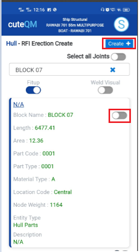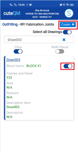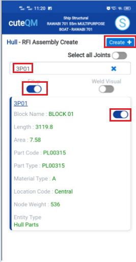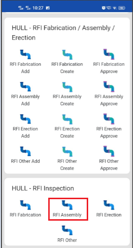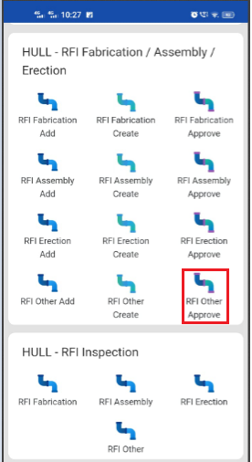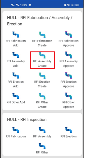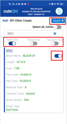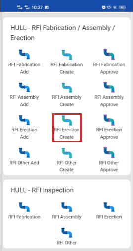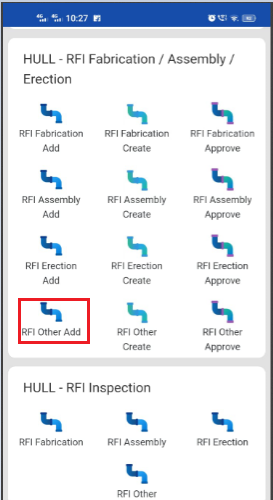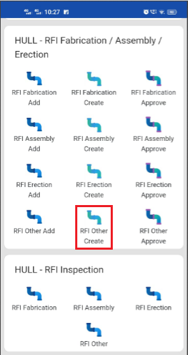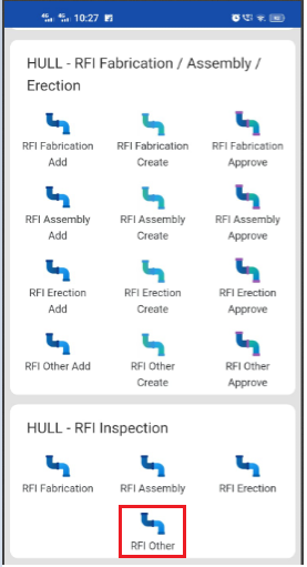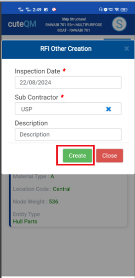 - Click RFI Other inspection create menu.This menu helps to create RFI requests from added hull parts .