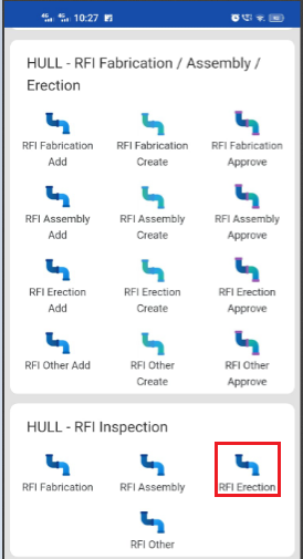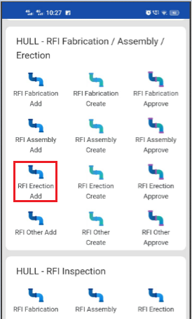 - Click RFI Hull Erection Add menu .This menu helps to add the hull parts and frames for the RFI Erection request.
