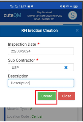 - After create button clicked,a popup will open to key in inspection date,subcontractor and description.