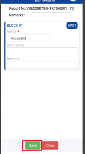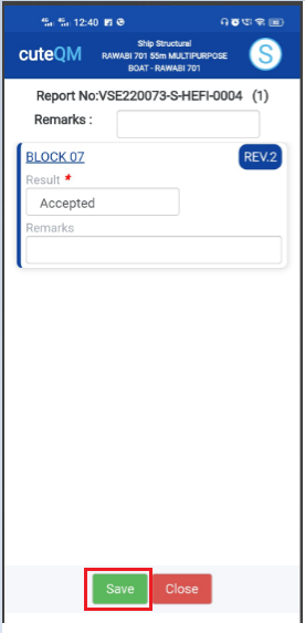 - Result will be defaultly loaded as accepted,If need to reject,you can change the dropdown as Reject