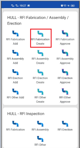 - Click RFI fabrication create menu.This menu helps to create RFI requests from added hull parts.
