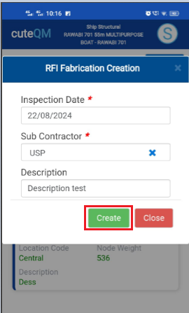 - After create button clicked,a popup will open to key in inspection date,subcontractor and description.