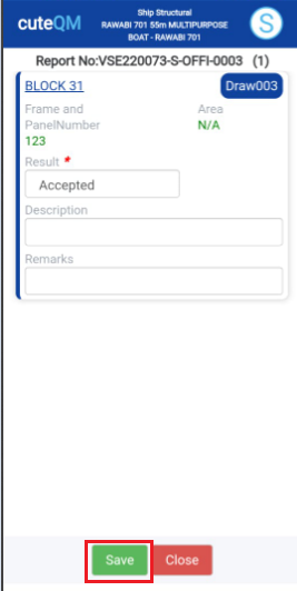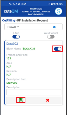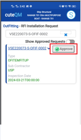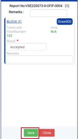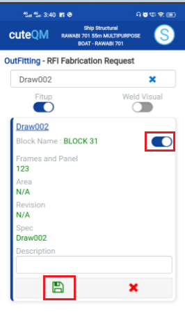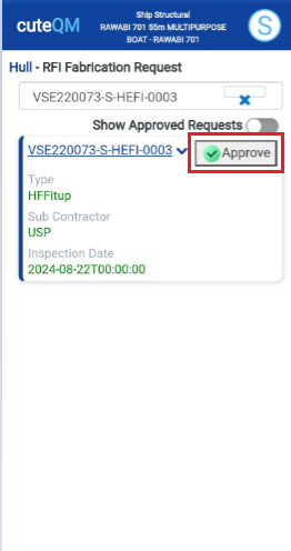 - Click Save button. RFI Fabrication inspection approved successfully.
