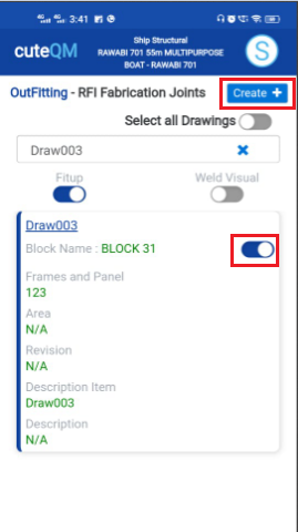 - Click RFI fabrication create menu.This menu helps to create RFI requests from added outfitting parts.