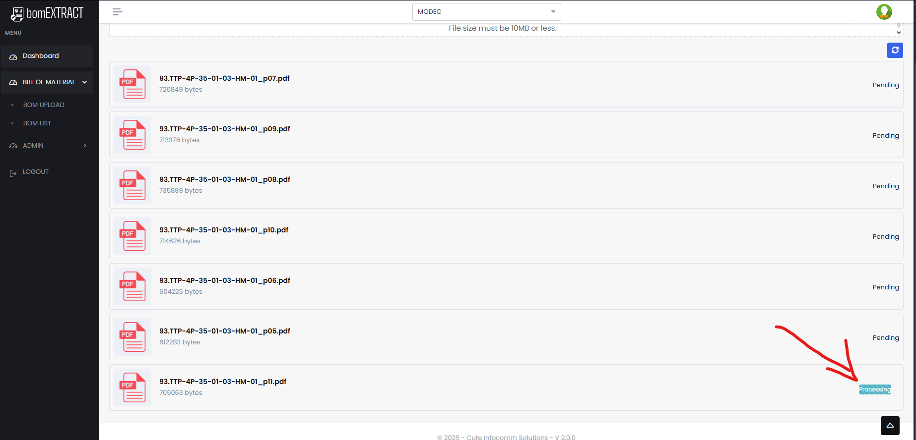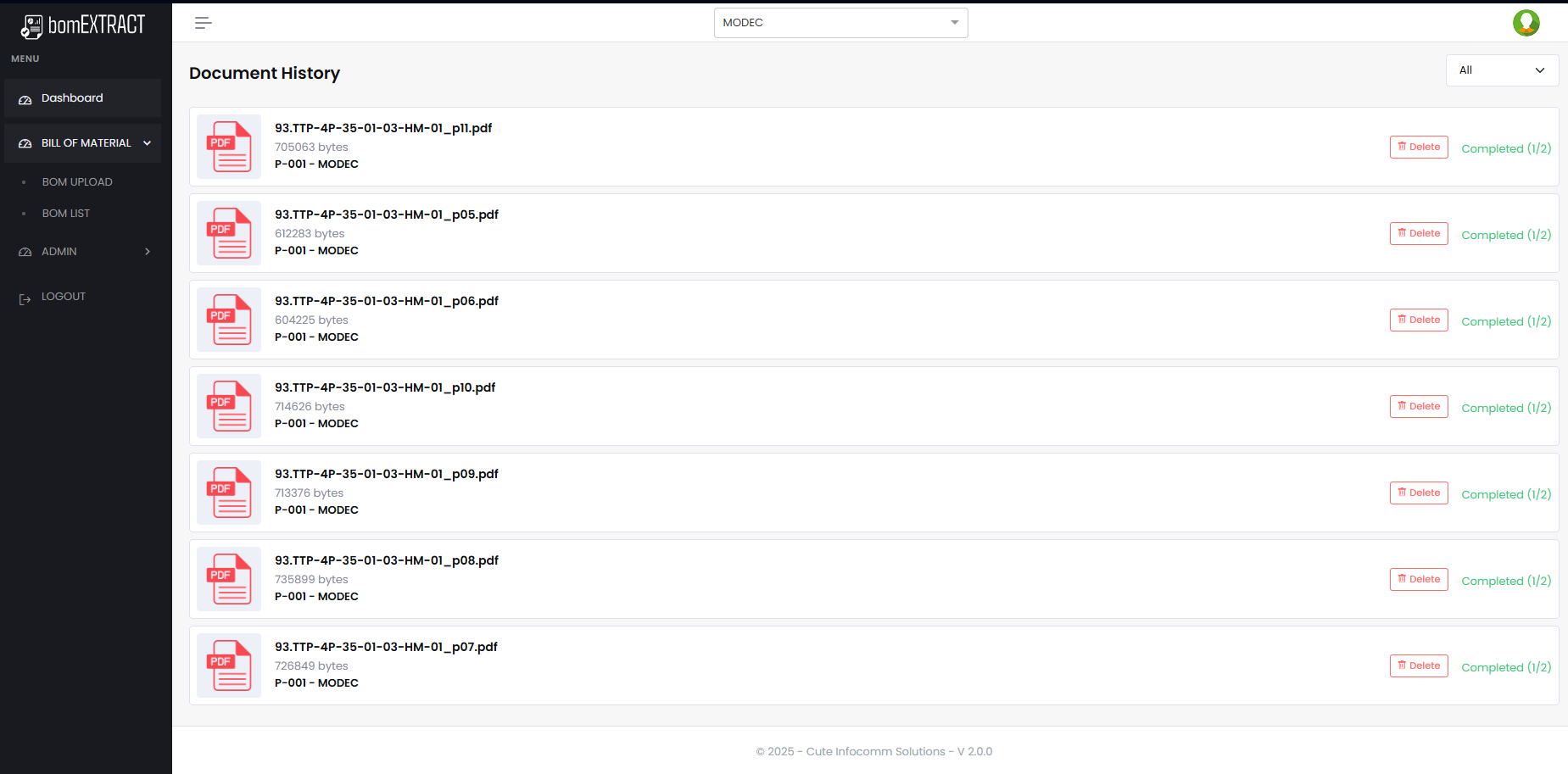 The BOM format depends on the project and hence to add a new project, contact us by sending two sample PDF files.