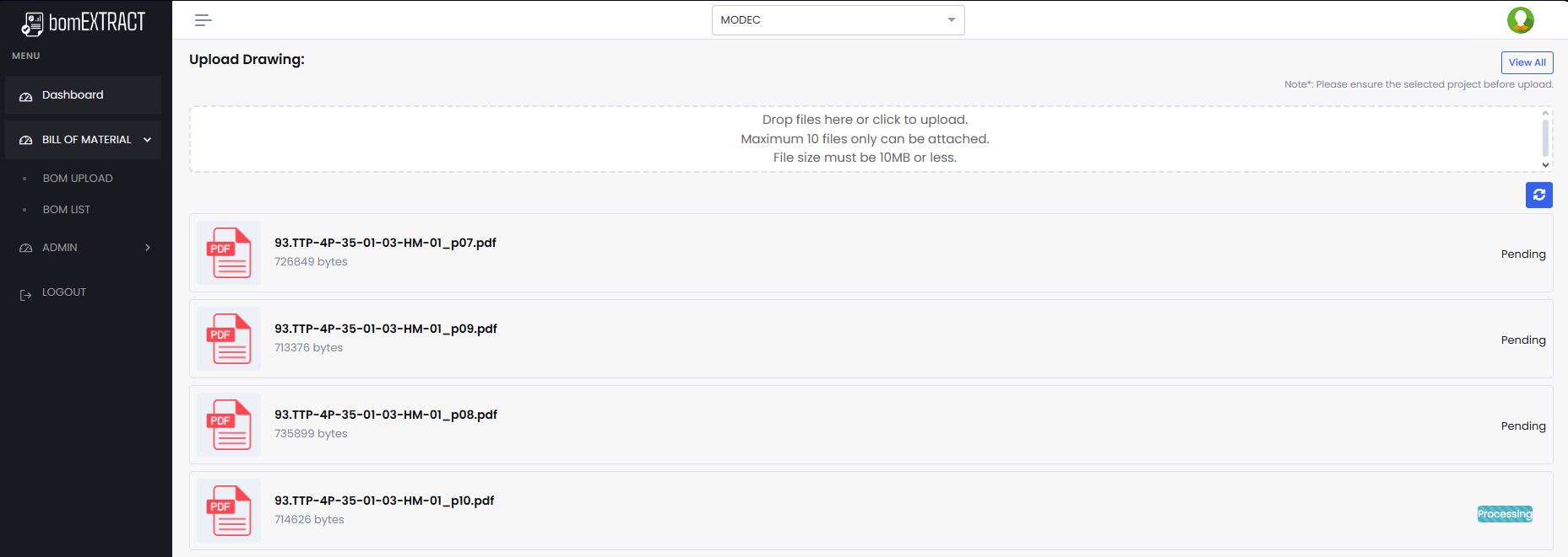 We can click on View All button in extract page to see the status of all uploaded drawings. If there are any errors we can review and reconfigure extraction.