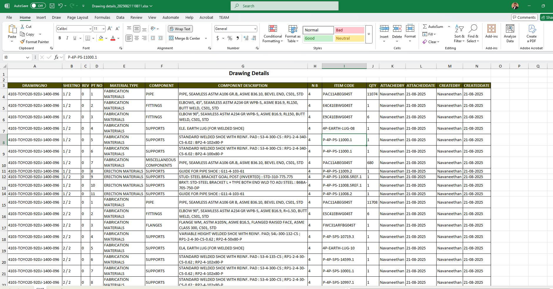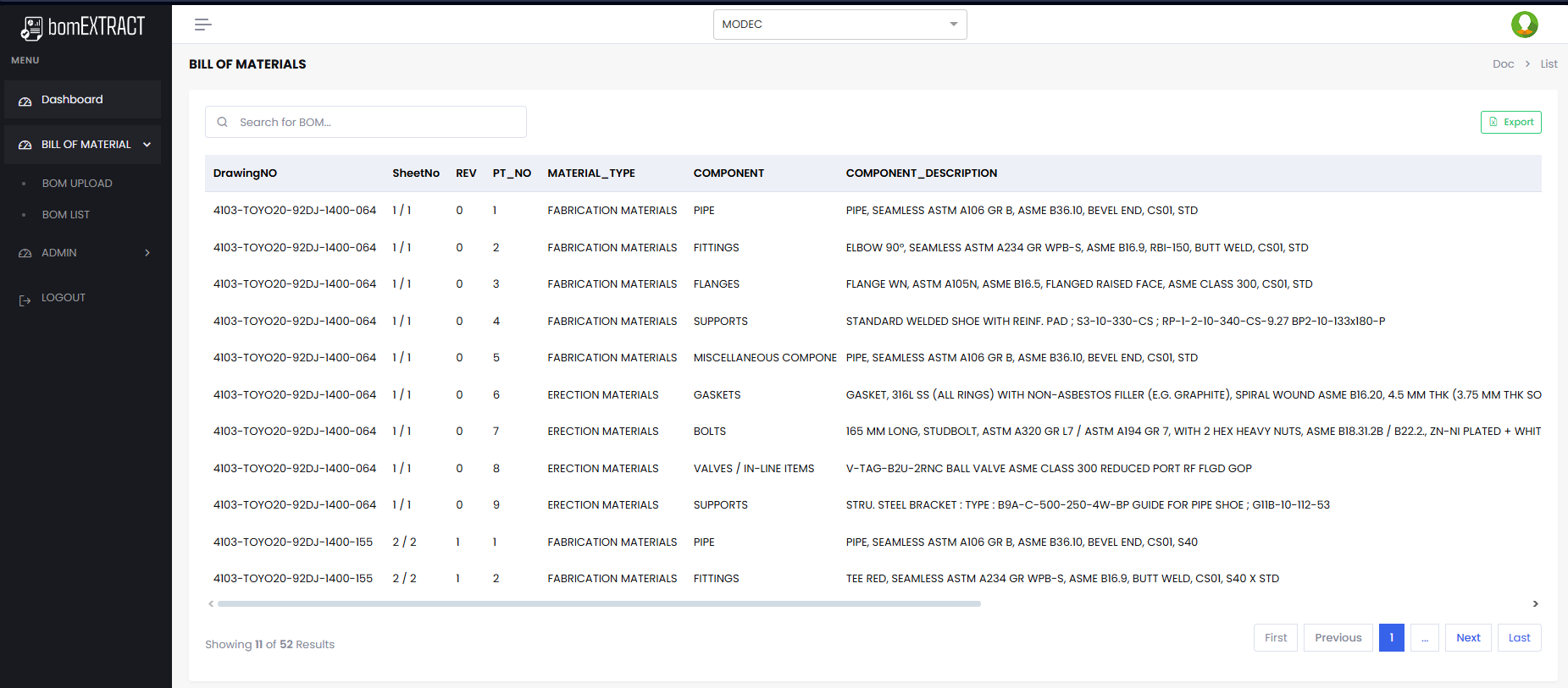 The BOM can be extracted from drawing PDF files and it can be converted to Excel sheets.