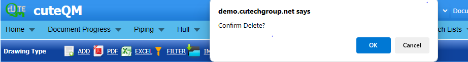 (Delete icon) for the corresponding Drawing type.You receive a confirmation message “Confirm delete?”.