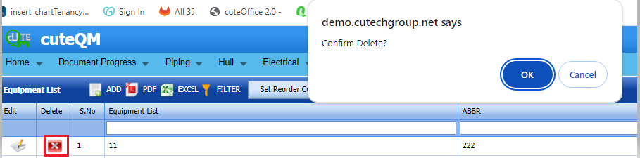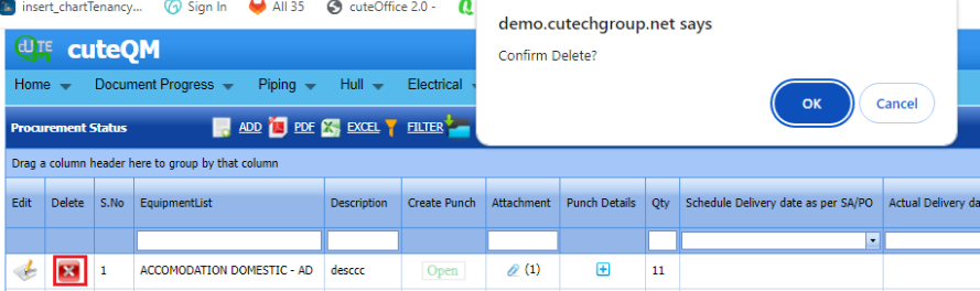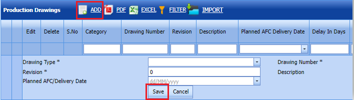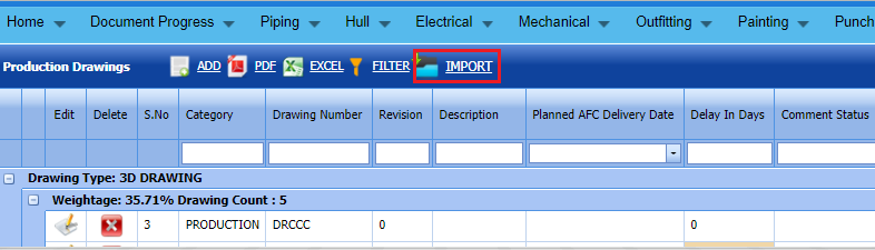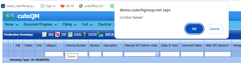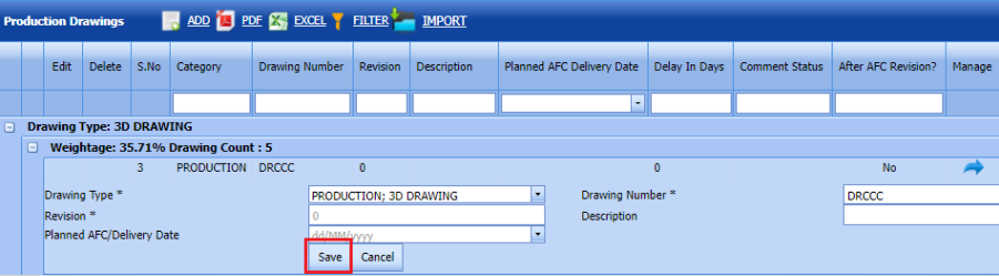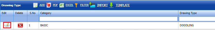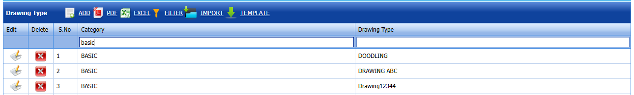 If you want to delete any specific drawing from the list of drawing, you can use (Delete icon) provided in the Delete column of the Drawing Type page. See Fig below
