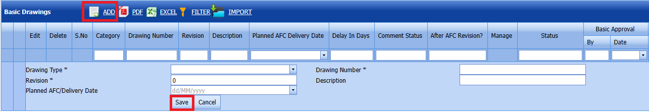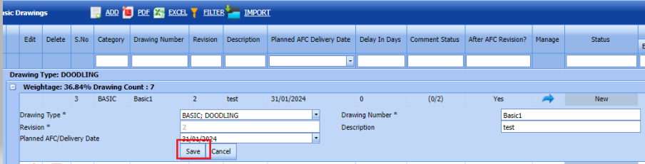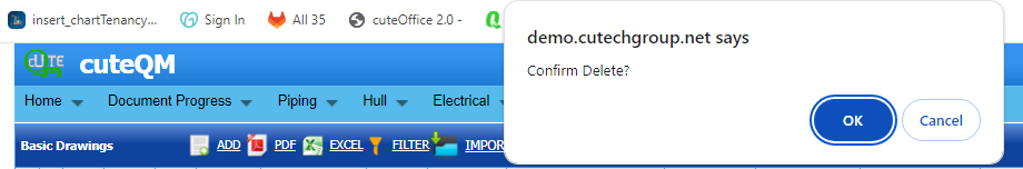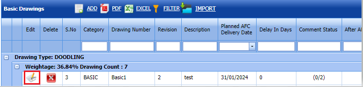 If you want to delete any specific Basic drawing from the list of drawings, you can use (Delete icon) provided in the Delete column of the Basic Drawing page. See Fig below