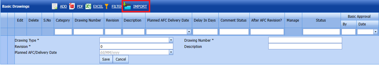 (IMPORT button) in the Basic drawing screen. Refer above fig - It will redirected to import page
