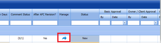 - Login as DPM_Basic role user and click Manage button placed against the basic drawing. It will redirected to details screen of the basic drawing. Refer below fig