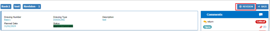 - After entering mandatory fields click save button. Refer above fig. Then New revision will be created for that drawing.