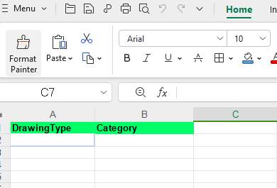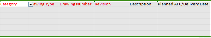 - Enter the required Drawing type and category details in the respective columns of the excel worksheet.