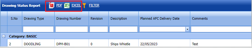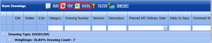 You can export a list of Basic Drawings added in the Basic drawing page in both the pdf and excel formats.