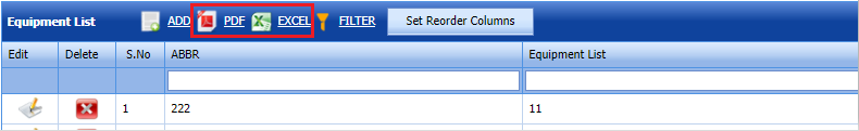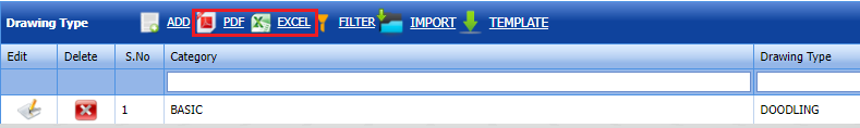 You can export a list of Drawing type added in the Drawing type page in both the pdf and excel formats.