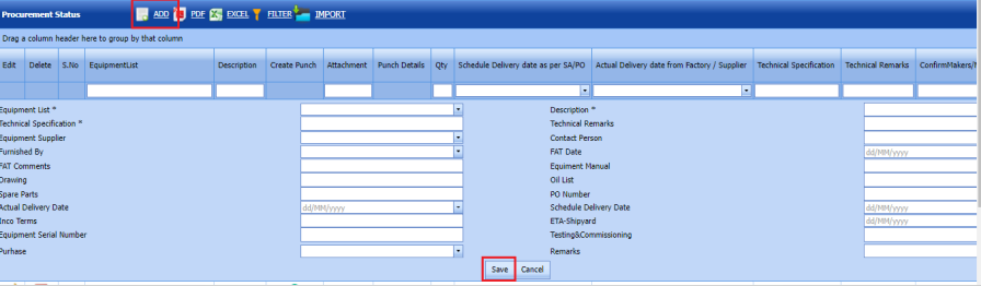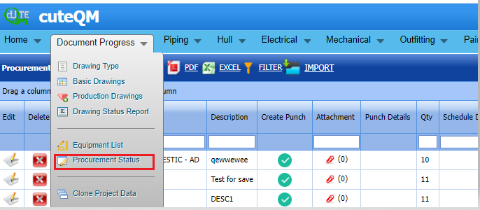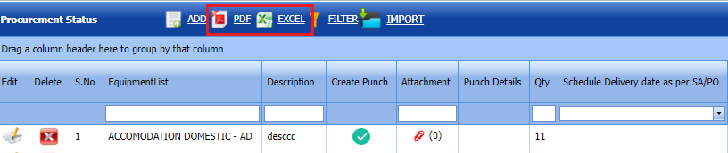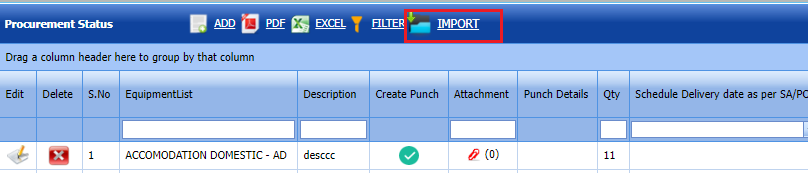 - After Imported successfully, imported data will be shown in Procurement status list screen
