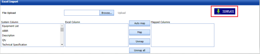 (TEMPLATE button) . An excel worksheet will be downloaded with a predefined template to enter the details of Basic Drawing details.