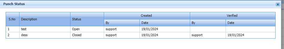 The View Punch Lists tab helps you to view the punch list, which is added by using the Create New Punch List tab.