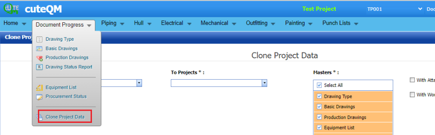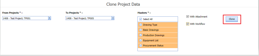 This page is used to copy the project data from one skid project to another skid project with attachments and workflow details