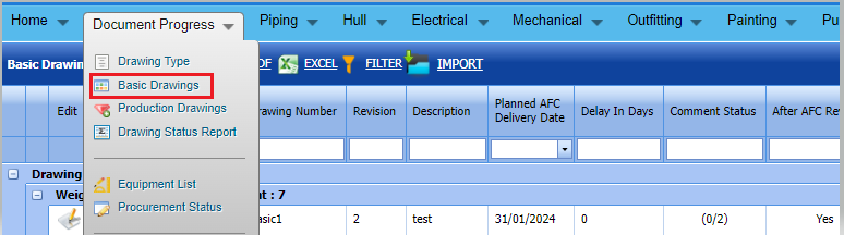 If you want to filter any Basic Drawings from the list of Basic Drawing , do the following steps,