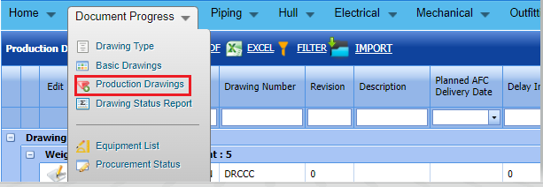 If you want to filter any category and drawing Type from the list of Drawing Type in the page, do the following,