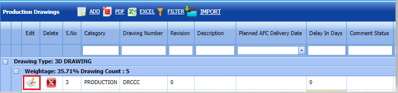 (Edit icon) in the Edit column for the respective drawing. See Fig 1.2.2 A new window opens to edit the saved one.