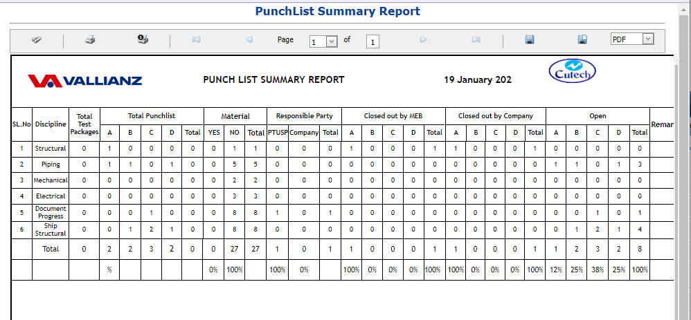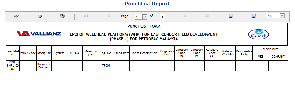 - It will redirected to new report page. And here report for the punch list shown. See fig below