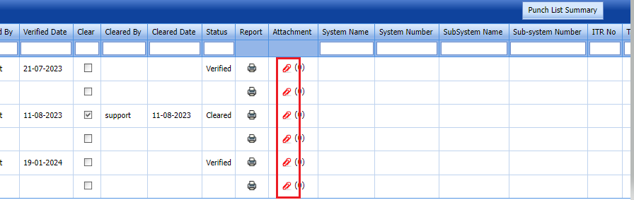 If you want to attach any file with any punch list listed in the Punch List page, you can attach the file by using