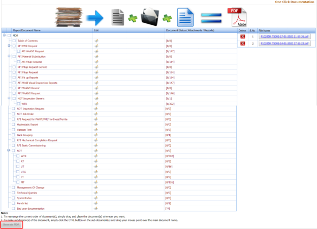 The system combines the selected files and shows as the pdf file in the left side of the One Click Documentation page, See Fig 9.4.
