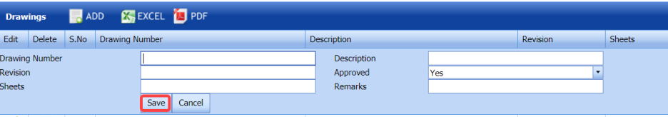 5. In the Approved box, if the drawing has approved, select Yes otherwise select No. If there is no need for approval means select NA.
