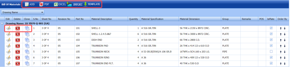 (Edit icon) in the Edit column for the respective drawing. See Fig 7.1.
