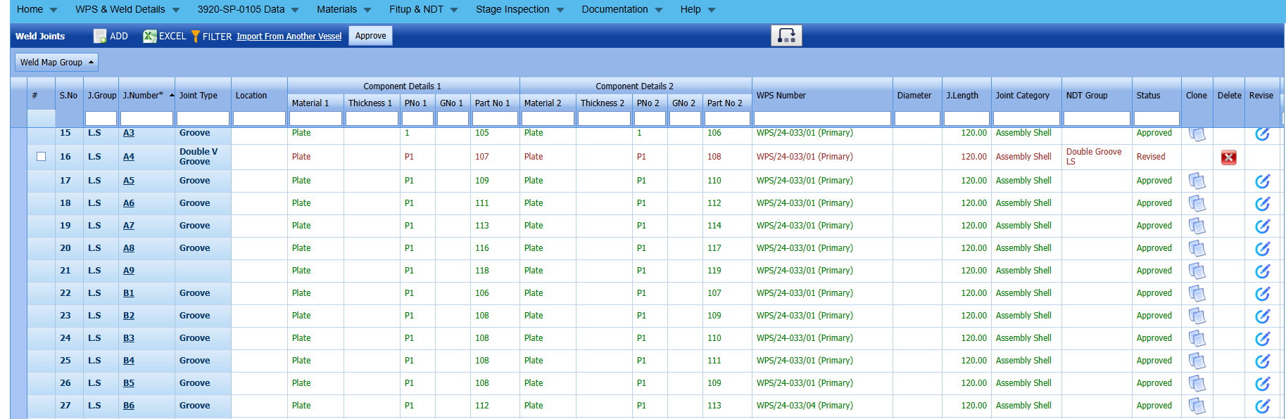 1. Click on the joint number for the respective weld joint to edit. See Fig 1.3.