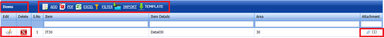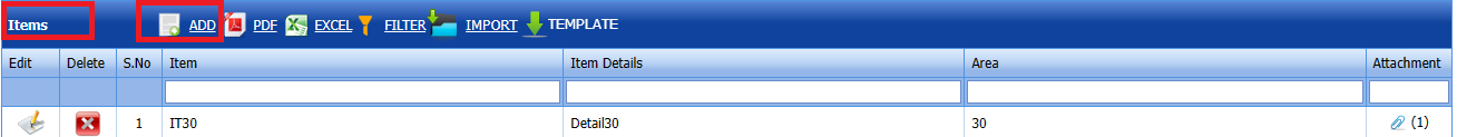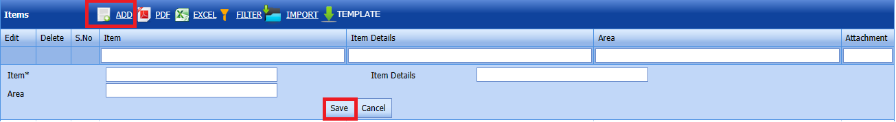 An excel worksheet will be downloaded with a predefined template to enter the details of Items.