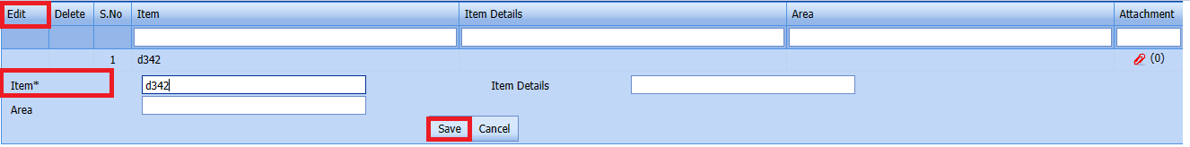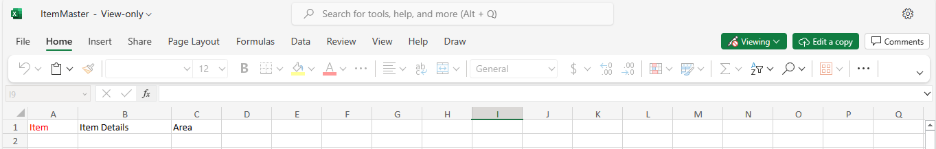 - Enter the required Item details in the respective columns of the excel worksheet.