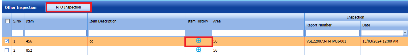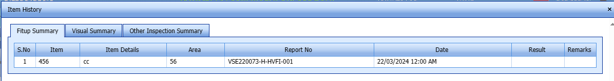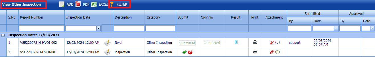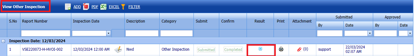 Once you have added the view other inspection, the result column in the view other inspection page is appeared with