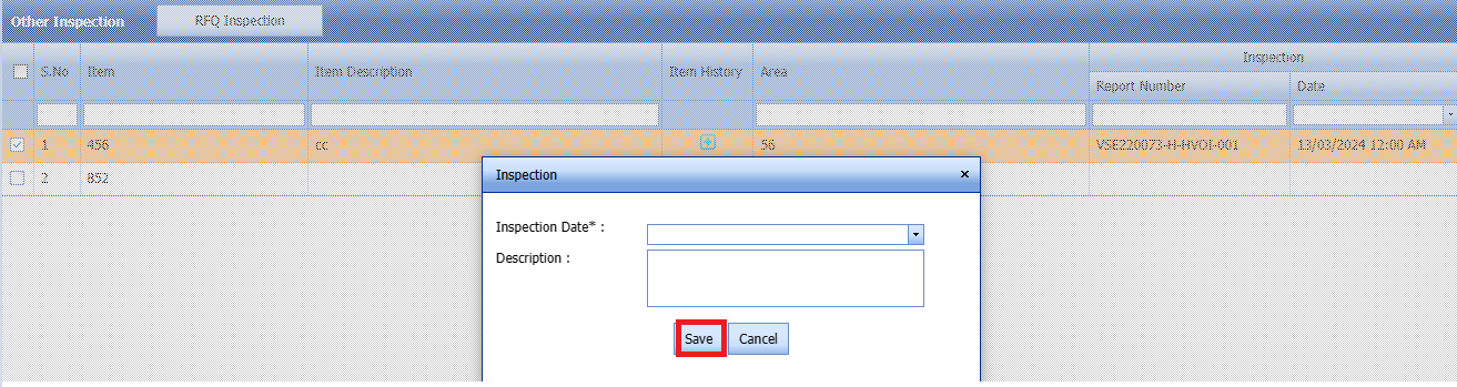 Fig 2.3.3 Approve View Other Inspection Page - Click Save