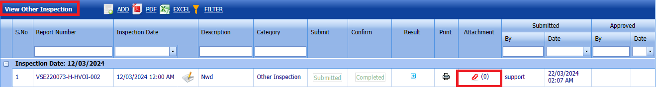 If you want to attach a file with any existing View other inspection in the view other inspection page, you can attach the file by using