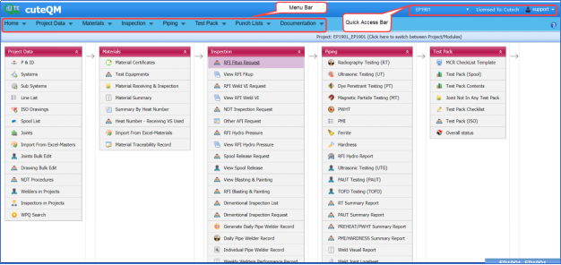 Once you have successfully logged in into the cuteQM application, the home page of the cuteQM application opens.