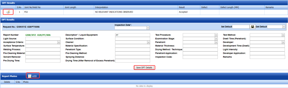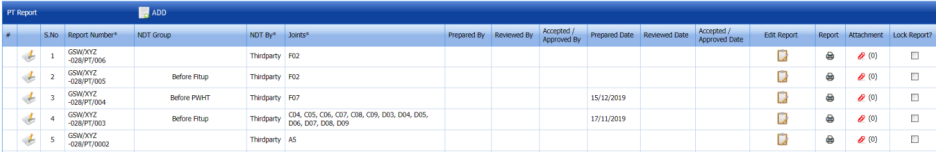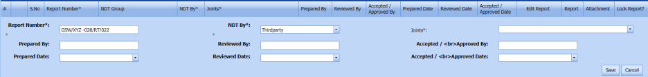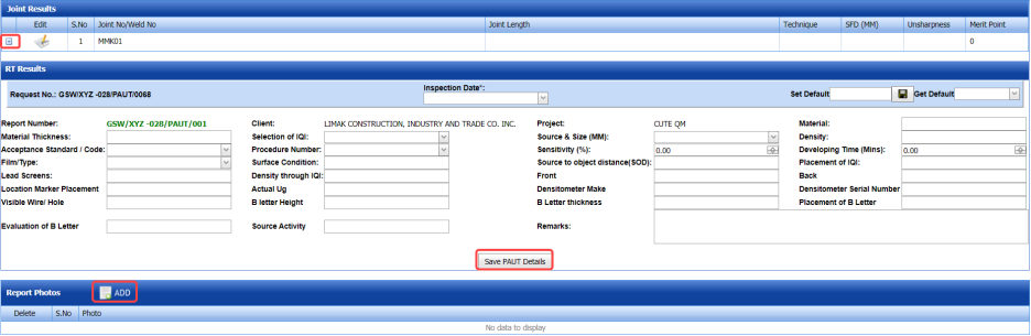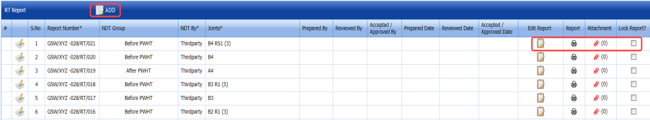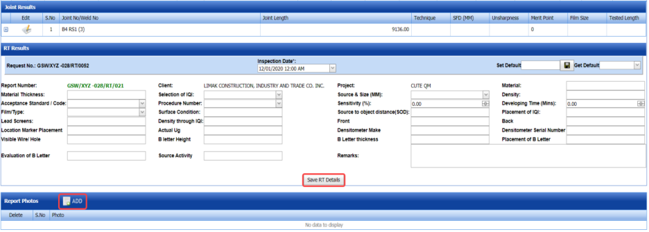 The RT report is successfully added. Once you have added the RT report, you must add RT inspection results.