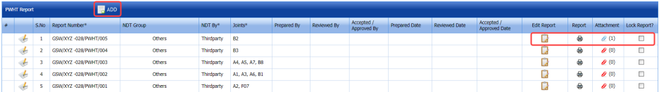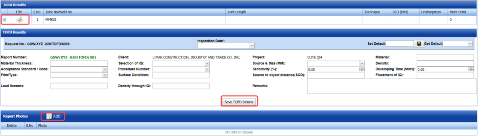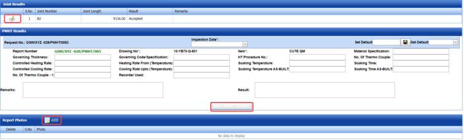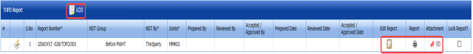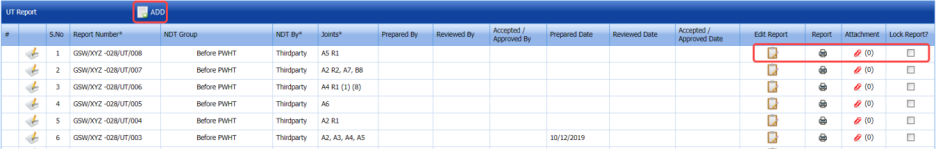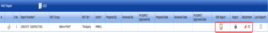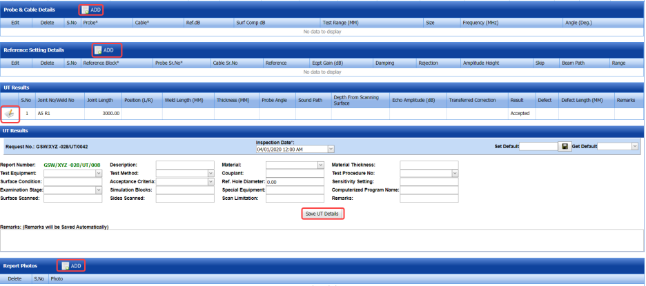 The UT report is successfully added. Once you have added the UT report, you must add UT inspection results.
