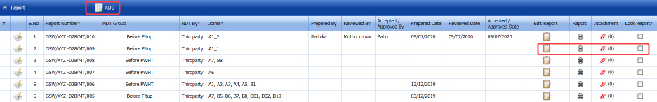 1. Click MT Report in the NDT